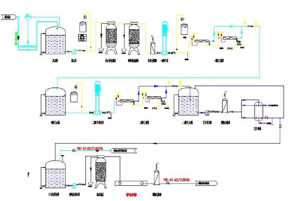 本項(xiàng)目規(guī)劃2m3/h二級(jí)RO+EDI純水設(shè)備,合同金額為32.5萬元,超純水系統(tǒng)的處理工藝流程分為:預(yù)處理系統(tǒng)+二級(jí)反滲透系統(tǒng)+EDI系統(tǒng)。系統(tǒng)內(nèi)工藝管道均采用304不銹鋼管道,反滲透高壓管路采用承壓好的不銹鋼管;