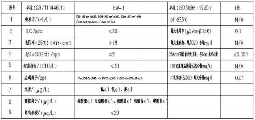水質(zhì)標(biāo)準(zhǔn):電子級(jí)水EW-1